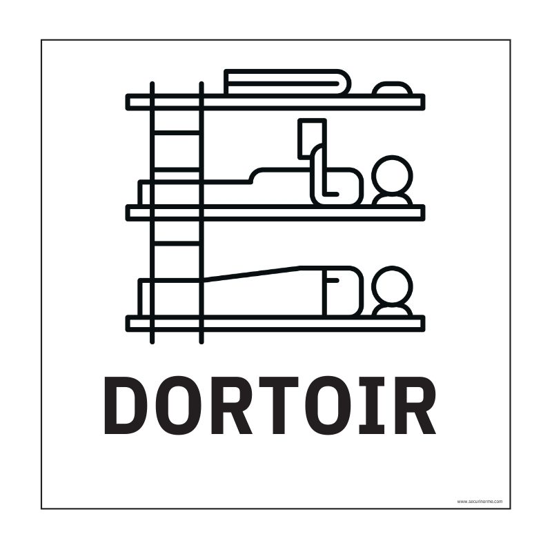 Disponible en vinyle adhésif ou en pvc, ce panneau «Dortoir» contenant un texte descriptif « Dortoir » et du pictogramme d'un lit superposé ; attirant et compréhensible ce panneau d'information permet de signaler aux usagers la présence d'un dortoir dans un établissement recevant du public.Caractéristique du Panneau d'information "Dortoir" :Matière : VinyleUsage : IntérieurCouleur du fond : BlancCouleur du texte : NoirCouleur du pictogramme : NoirDimensions : 250 x 250 mm Rappel de la loi :Pour etre conforme à la réglementation Accessibilité Handicap, la signalisation doit etre:Visible : la lecture doit pouvoir se faire en position debout ou assise. Si le panneau est placé à moins de 2,2 m de hauteur, on doit pouvoir s'en approcher à au moins 1 m.Lisible : le contraste des couleurs du panneau doit etre suffisant. La taille des caractères doit assez grand (4.5mm minimum, 15mm pour une information d'orientation)Compréhensible : on utilise un pictogramme normalisé si il en existe.
