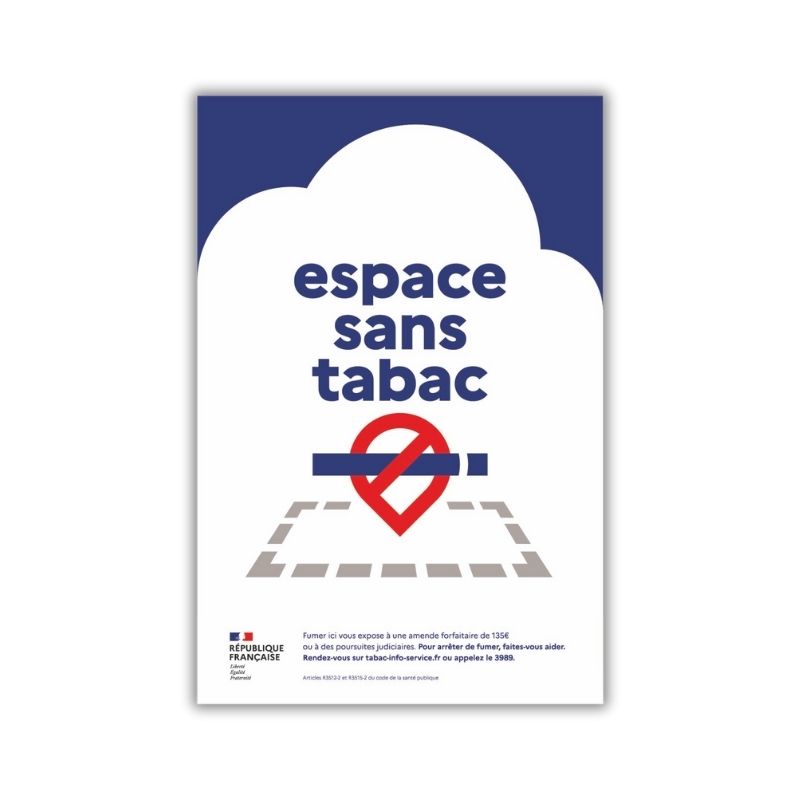 Panneau Espace Sans Tabac – Périmètre Sans TabacLe Panneau Espace Sans Tabac – Périmètre Sans Tabac est un dispositif de signalisation officiel, conçu pour rappeler l’interdiction de fumer dans les espaces extérieurs soumis à la réglementation. Conforme à la charte graphique de l'État français, il garantit une visibilité optimale et une compréhension immédiate du message par tous les usagers. Le panneau inclut les mentions légales obligatoires : la référence à l'article R.3512-2 du Code de la Santé Publique, le montant de l’amende encourue et le numéro de Tabac Info Service. Un élément essentiel pour assurer la conformité de vos espaces extérieurs et sensibiliser efficacement les usagers.Caractéristiques techniques