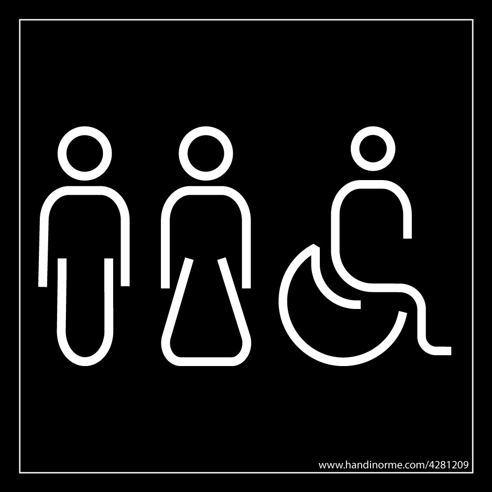 Optez pour le Panneau Signalétique Homme+femme+pmr Meri - 125 X 125 mm, une solution innovante et originale pour indiquer les espaces accessibles aux personnes à mobilité réduite, hommes et femmes. Ce panneau de signalisation est fabriqué en France et conçu par les créatifs d'Handinorme, garantissant une qualité optimale.