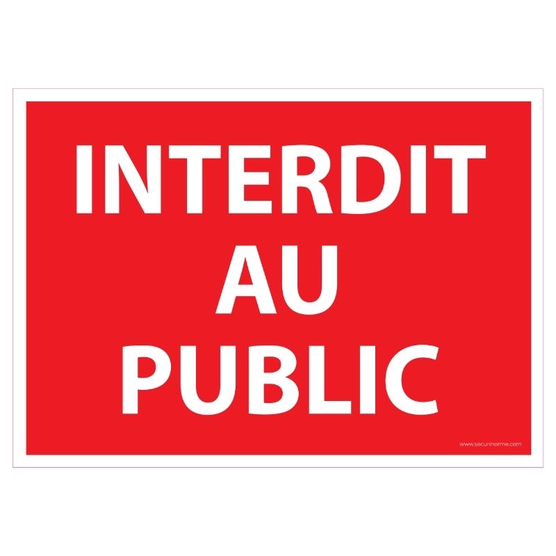 Le format rectangulaire du panneau est disponible en deux dimensions : 210 x 150 mm et 420 x 300 mm, afin de s'adapter à l'espace dont vous disposez et assurer une visibilité optimale. Le texte ""Interdit au public"" est écrit en blanc sur un fond rouge, pour capter instantanément l'attention des visiteurs et éviter toute confusion.