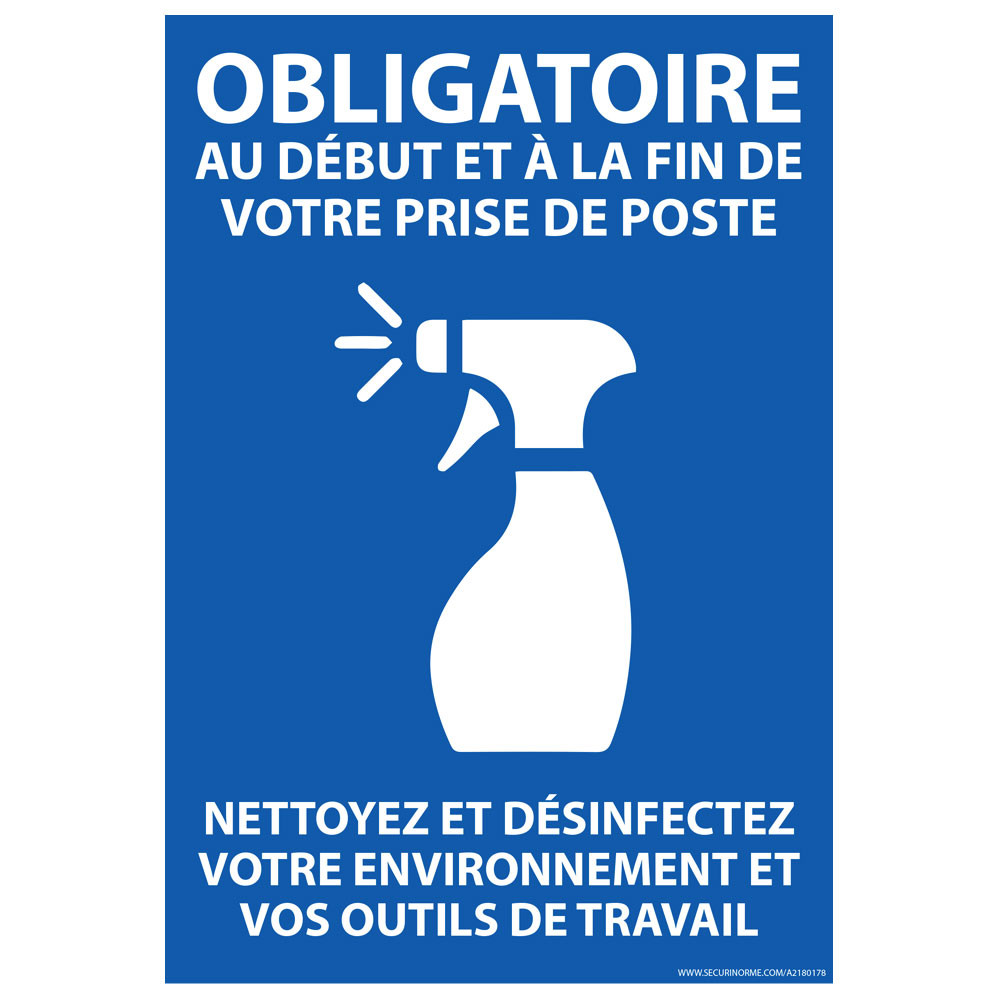 Découvrez notre panneau d'hygiène conçu pour garantir la sécurité de vos collaborateurs en entreprise. Ce panneau joue un rôle essentiel en rappelant l'importance de nettoyer et désinfecter votre environnement de travail, en début et en fin de poste. Il contribue à limiter efficacement la contamination dans vos locaux.