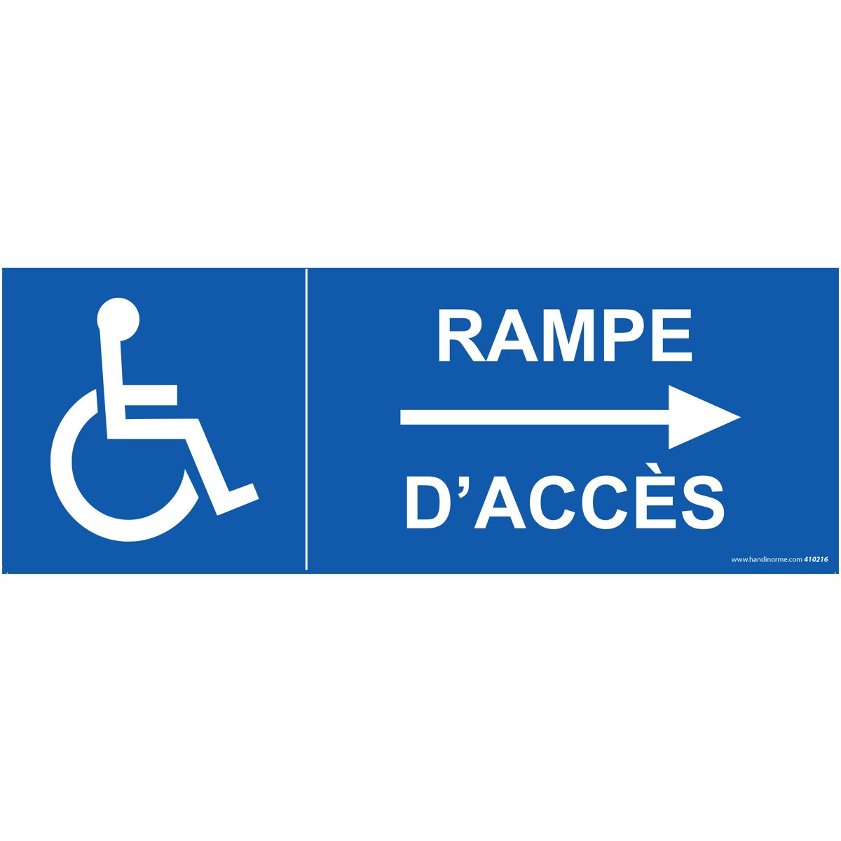 Optez pour la signalisation Handicapé - Rampe D'accès - Flèche À Droite, un panneau indispensable pour faciliter l'accès des personnes handicapées et à mobilité réduite (PMR) dans tous les lieux publics recevant du public (ERP), les parkings d'entreprise ou d'hôtel, entre autres.