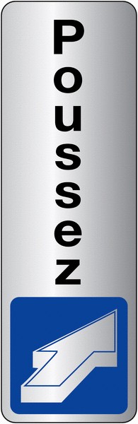 Optez pour le Panneau Signalétique - Poussez - Vertical pour guider efficacement les visiteurs et les salariés présents dans votre établissement. Cette signalétique est idéale pour les surfaces vitrées ou lisses et permet d'indiquer clairement que vous devez pousser la porte afin de l'ouvrir.