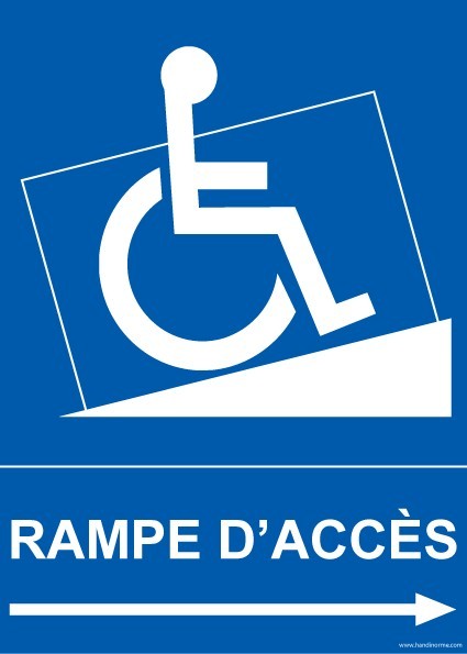 Panneau "Rampe d'accès" pour handicapé + pictoExiste en PVC avec adhésif ou en Vinyle souple autocollant.Disponible en 3 dimensionsFacile et rapide à poser.Ce pictogramme permet d'indiquer les rampes d'accès réservées aux personnes en situation de handicap et à mobilité réduite PMRIdéal dans tous lieux publics recevant du public (ERP), parking d'entreprise, hôtel, administrations...Caractéristiques :Fixation : AdhésifMatériau : PVC ou vinyle adhésifRéflexion : Non-réfléchissantSe colle en extérieur ou intérieur, pour la version PVC et intérieur pour le vinyle Choix entre 3 dimensions: 150 mm x 210 mm/ 300 x 420 mm ou 450x 630 mm