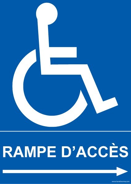 Panneau " Rampe d'accès" droite + picto handicapé"Existe en PVC avec adhésif ou en Vinyle souple autocollant.Disponible en 3 dimensionsFacile et rapide à poser.Ce pictogramme permet d'indiquer le cheminement reservé aux personnes en situation de handicap et à mobilité réduite PMRIdéal dans tous lieux publics recevant du public (ERP), parking d'entreprise, hôtel, administrations...Caractéristiques :Fixation : AdhésifMatériau : PVC ou vinyle adhésifRéflexion : Non-réfléchissantSe colle en extérieur ou intérieur, pour la version PVC et intérieur pour le vinyle Choix entre 3 dimensions: 150 mm x 210 mm/ 300 x 420 mm ou 450x 630 mm