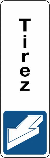 Ce panneau signalétique indique non seulement le texte ""Tirez"" pour ouvrir la porte, mais il possède également un pictogramme contrasté de flèche pointant vers soi. Ce visuel supplémentaire rend le message encore plus compréhensible, même pour ceux qui ne parlent pas français.