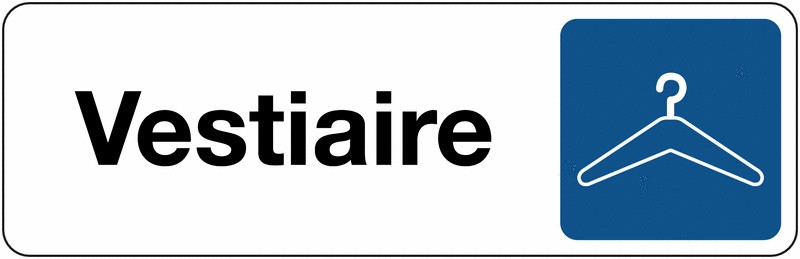 Le panneau signalétique met en évidence l'emplacement des vestiaires, facilite l'identification des différentes cabines et indique clairement la porte d'accès principale. Grâce au pictogramme contrasté d'un cintre, il offre un message facilement compréhensible, même pour les personnes ne maîtrisant pas le français.