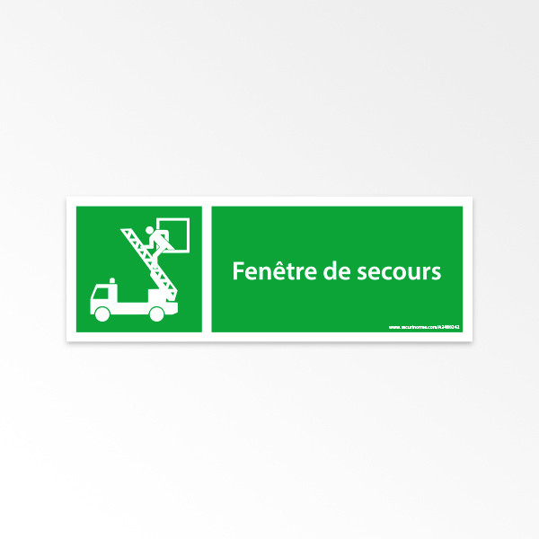 Le pictogramme 'Fenêtre de secours' présent sur ces panneaux est conforme à la norme ISO EN 7010, obligatoire depuis le 1er janvier 2014. Cette norme vise à harmoniser la signalétique de sécurité au niveau international, afin qu'elle soit compréhensible par tous.