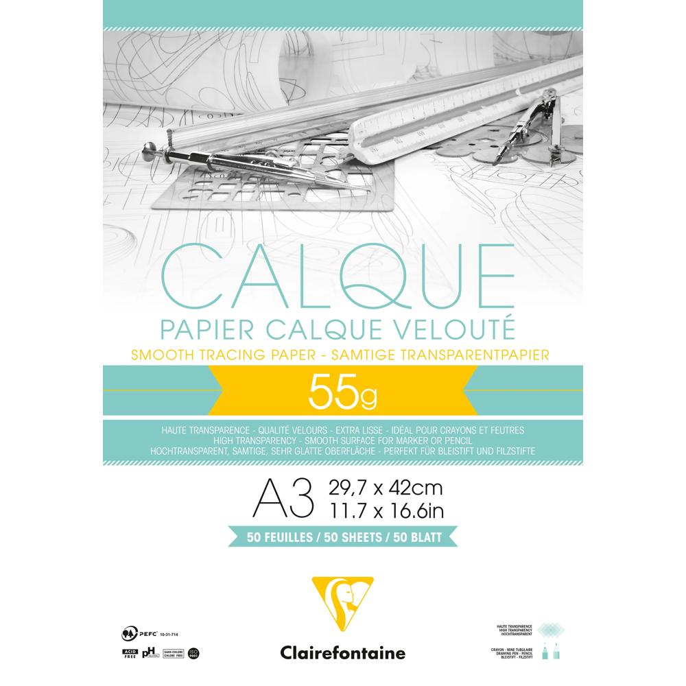 Explorez les possibilités créatives et techniques offertes par le Papier Calque bloc collé 50F A3 55g de Clairefontaine. Ce papier calque de haute qualité se distingue par sa transparence optimale, offrant une alternative écologique et esthétique au plastique. Biodégradable et recyclable, il est également sans acide et de pH neutre, garantissant ainsi une durabilité accrue.