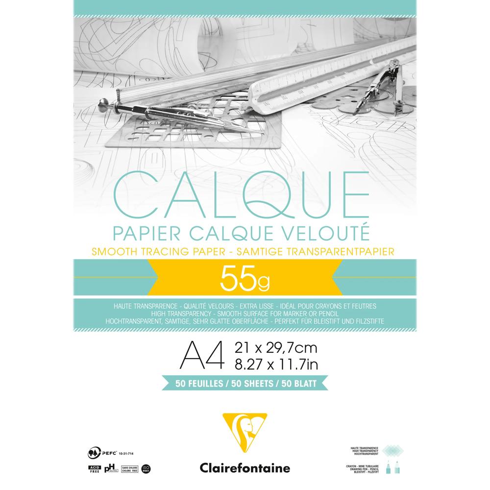 Le Papier Calque bloc collé 50F A4 55g de Clairefontaine peut également être utilisé pour l'impression en offset ou en digital. À partir d'un grammage de 90 g, il est compatible avec les imprimantes jet d'encre et les copieurs.