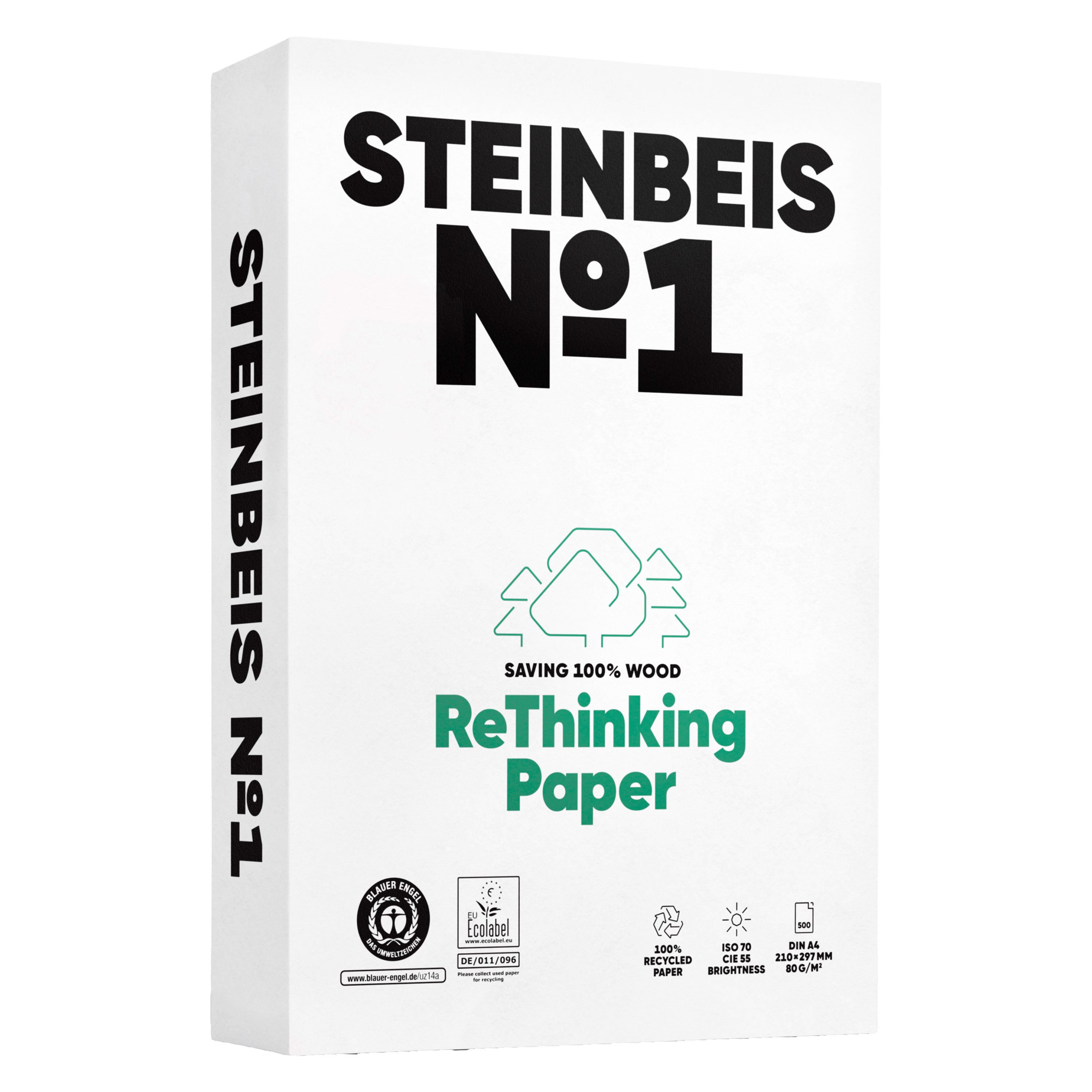 Optez pour la ramette de papier recyclé Steinbeis N°1, un choix incontournable pour les professionnels soucieux de l'environnement.