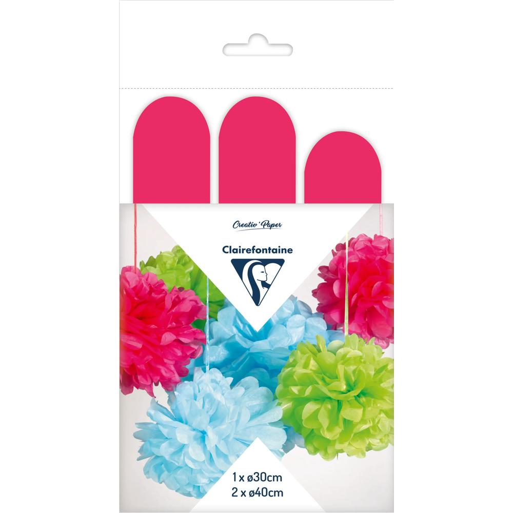 PAPIER DE SOIE, Set de 3 pompons à suspendre Ø30x1 et Ø40x2 - Cyclamen