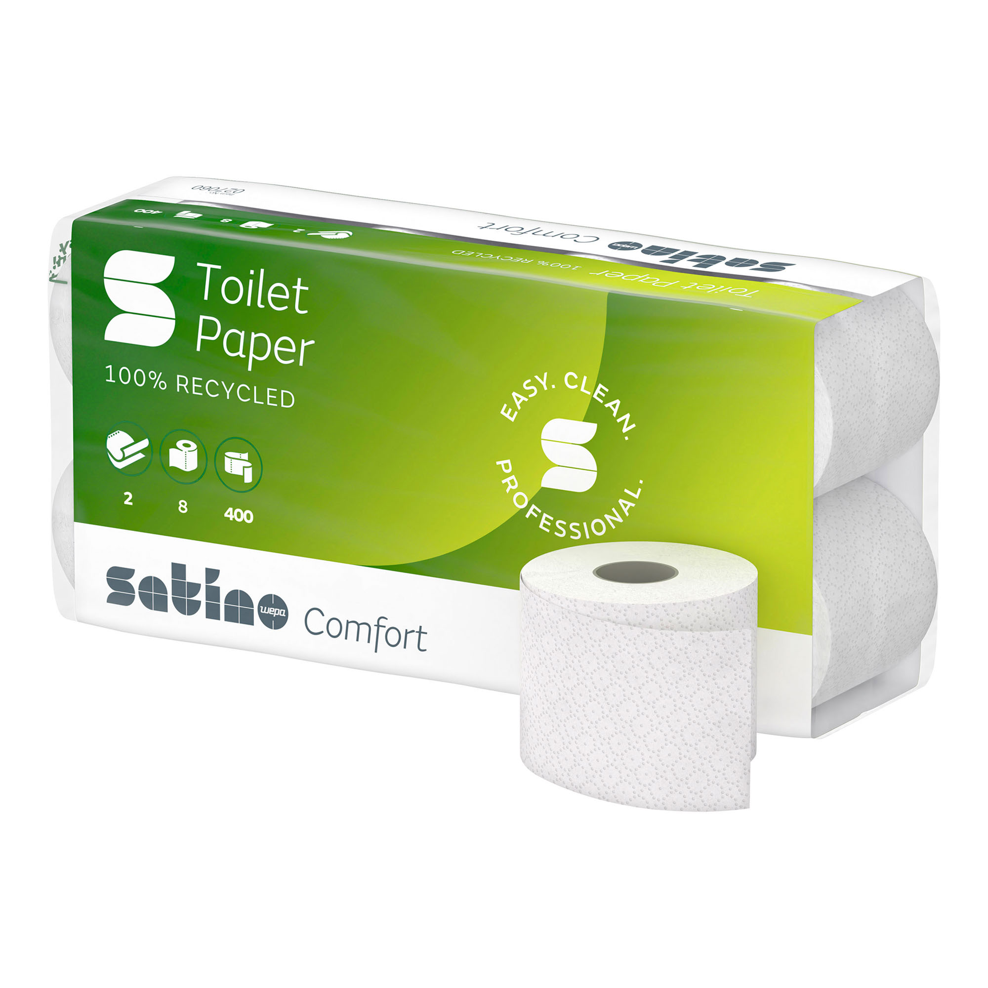 Le papier toilette Satino Comfort de Wepa est extrêmement résistant et agréable au toucher. Grâce à leurs 400 feuilles, chaque rouleau fait preuve d'une grande autonomie.