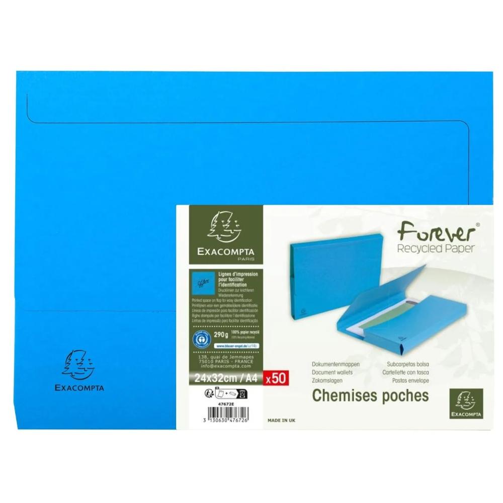 Optez pour le Paquet de 50 chemises poche coloris vifs Forever® - 24,5x32,5cm d'Exacompta et apportez de la couleur à votre bureau tout en protégeant vos documents importants de manière écologique et pratique.