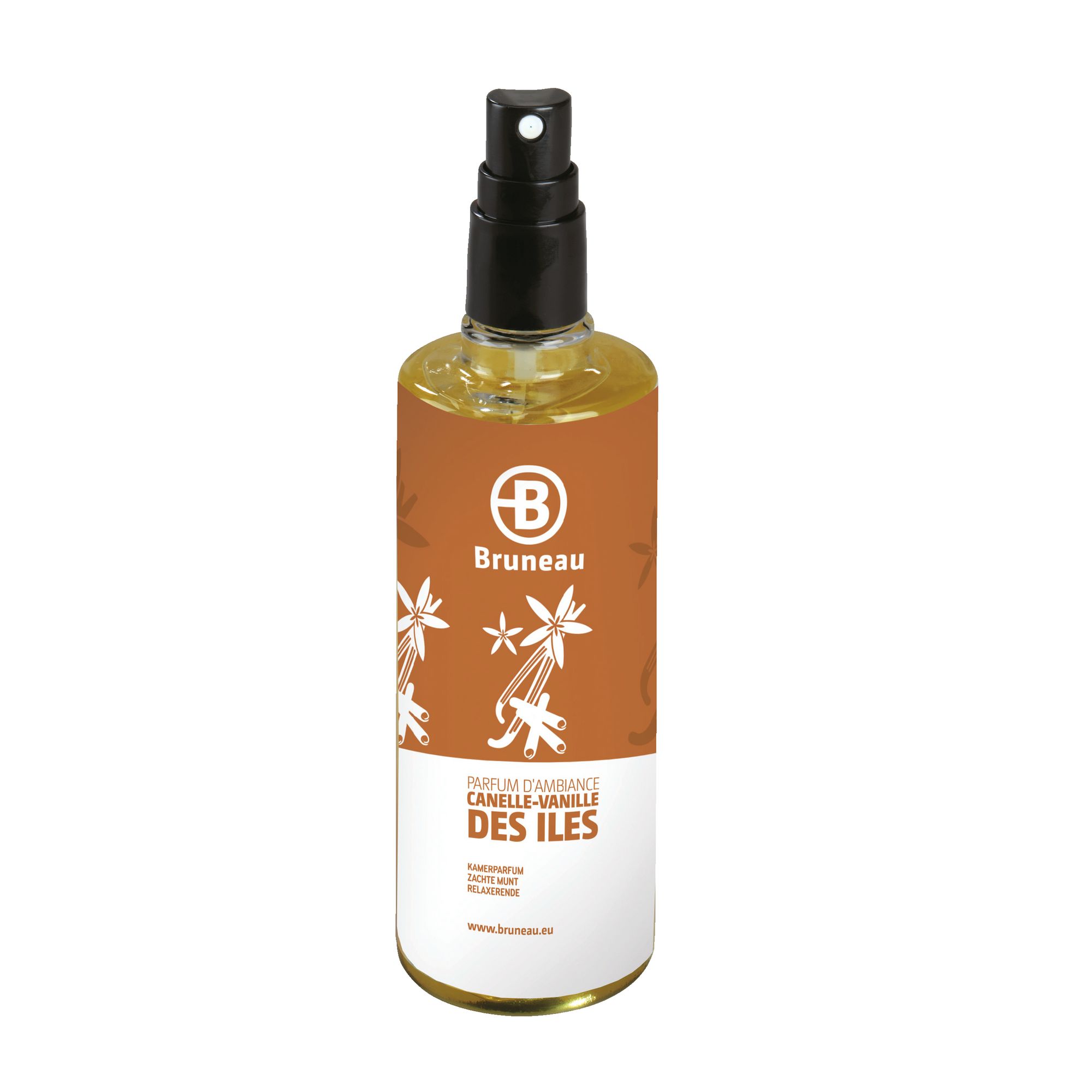 Parfum d'intérieur à la cannelle vanille des îles pour une atmosphère agréablement parfumée et qui vous fera voyager. Parfum discret et élégant, fragrance à base de d'huiles essentielles. Vaporisateur en verre 125 ml.
