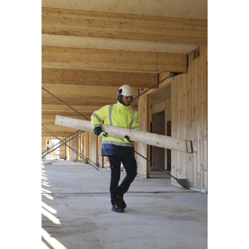Optez pour une Parka Haute Visibilité 5 en 1, idéale pour garantir votre sécurité sur les chantiers et dans des secteurs variés tels que le Bâtiment, le Traitement des déchets, et bien d'autres. Conforme aux normes EN ISO 13688:2013/A1:2021 et EN343:2019, cette parka assure une protection efficace contre le froid et la pluie tout au long de l'année.