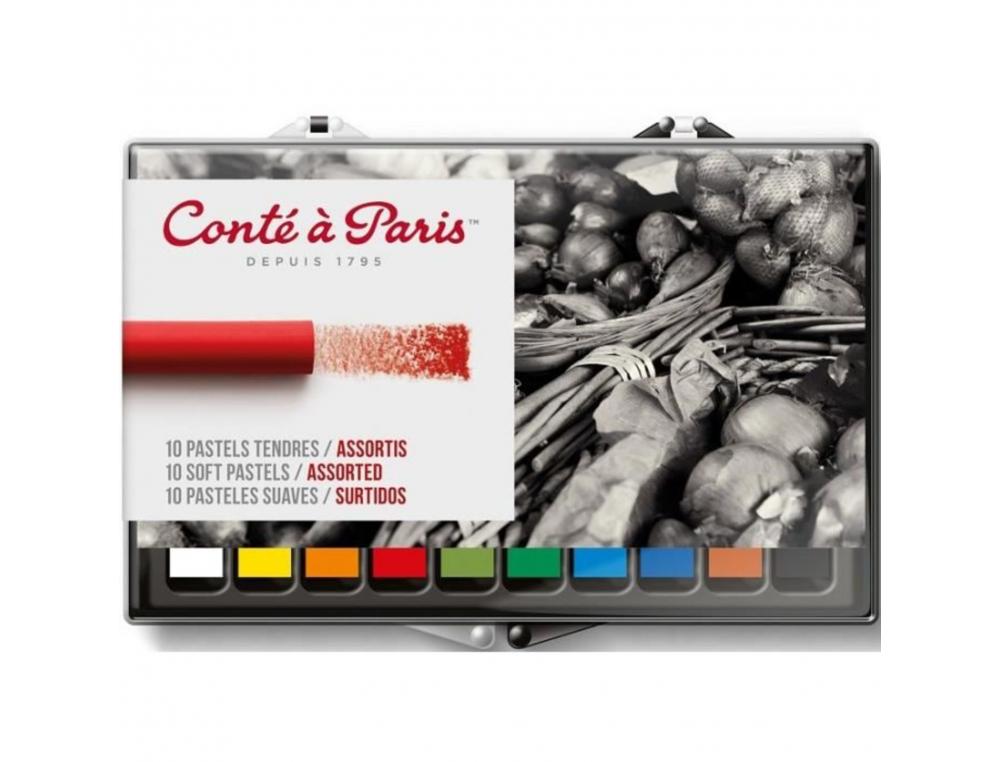 Découvrez les pastels tendres Conté à Paris, une boîte de 10 unités aux couleurs assorties, parfaits pour les artistes exigeants. Ces pastels secs sont riches en pigments et composés de craie, d'argile, et d'autres substances soigneusement dosées, permettant un mélange harmonieux des nuances et une excellente résistance à la lumière.