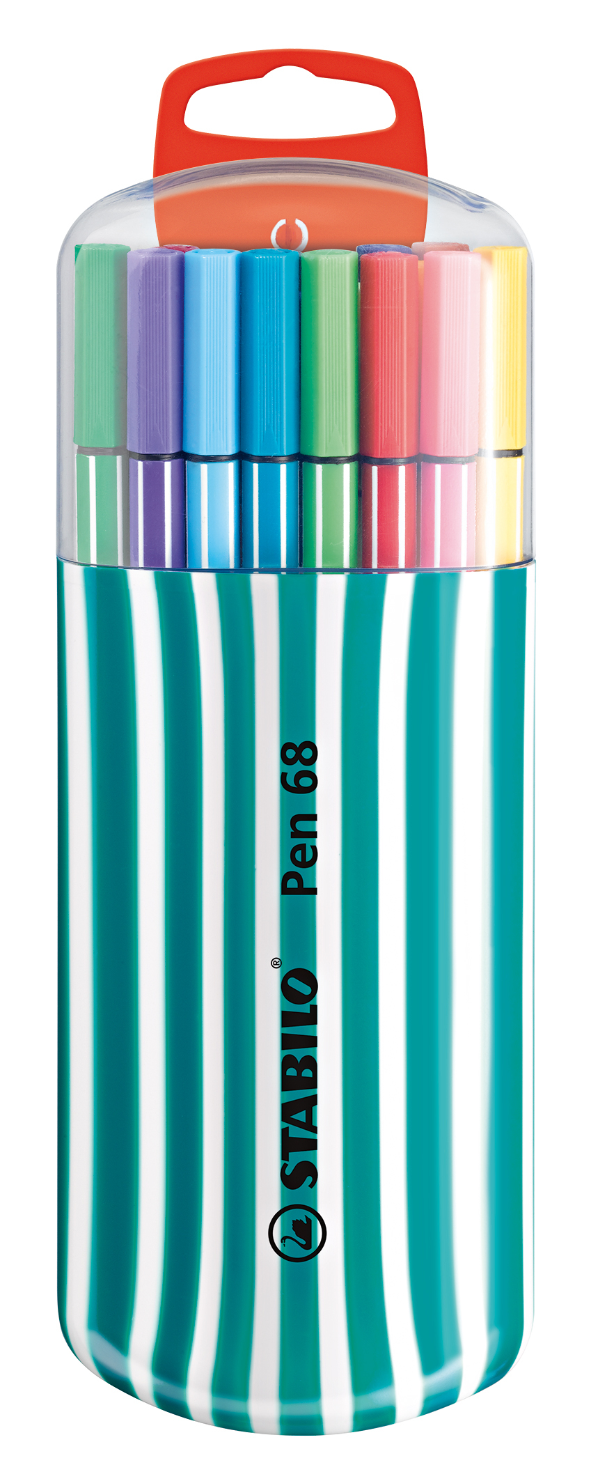 Présentation de l'étui plastique refermable Zebrui Turquoise 20 feutres PEN68 : pointe moyenne et coloris assortis de la marque Stabilo