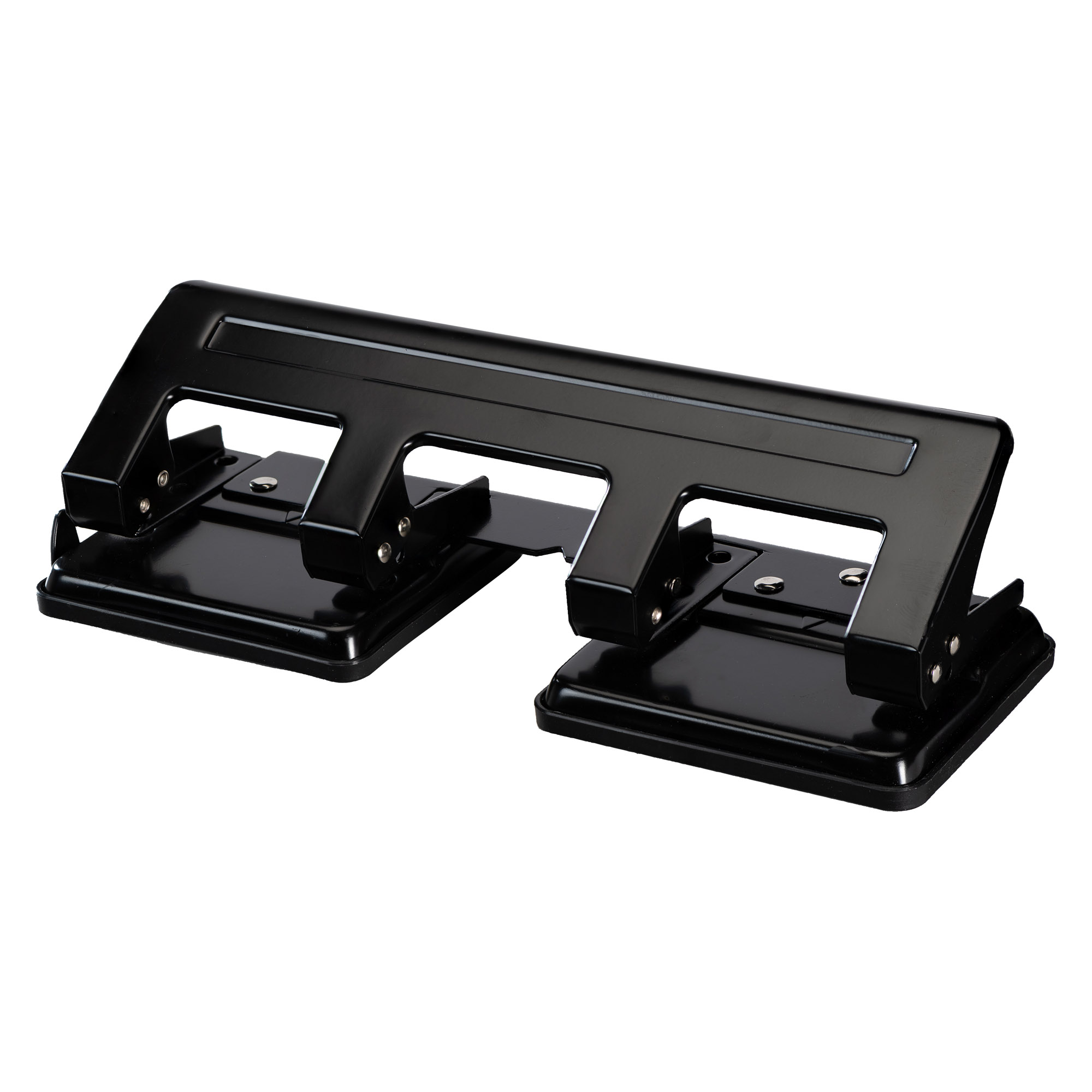 Description détailléeCorps en métal noir.Réglette de centrage pour un alignement parfait du papier. Capacité 20 feuilles ou 2mm d’épaisseur.Réceptacle à confettis.Diamètre des poinçons : 6 mm. Entraxe : 8 cm.Dimensions : H 7,7 x L 26,5 x P 8,7 cm. Poids : 660 g.