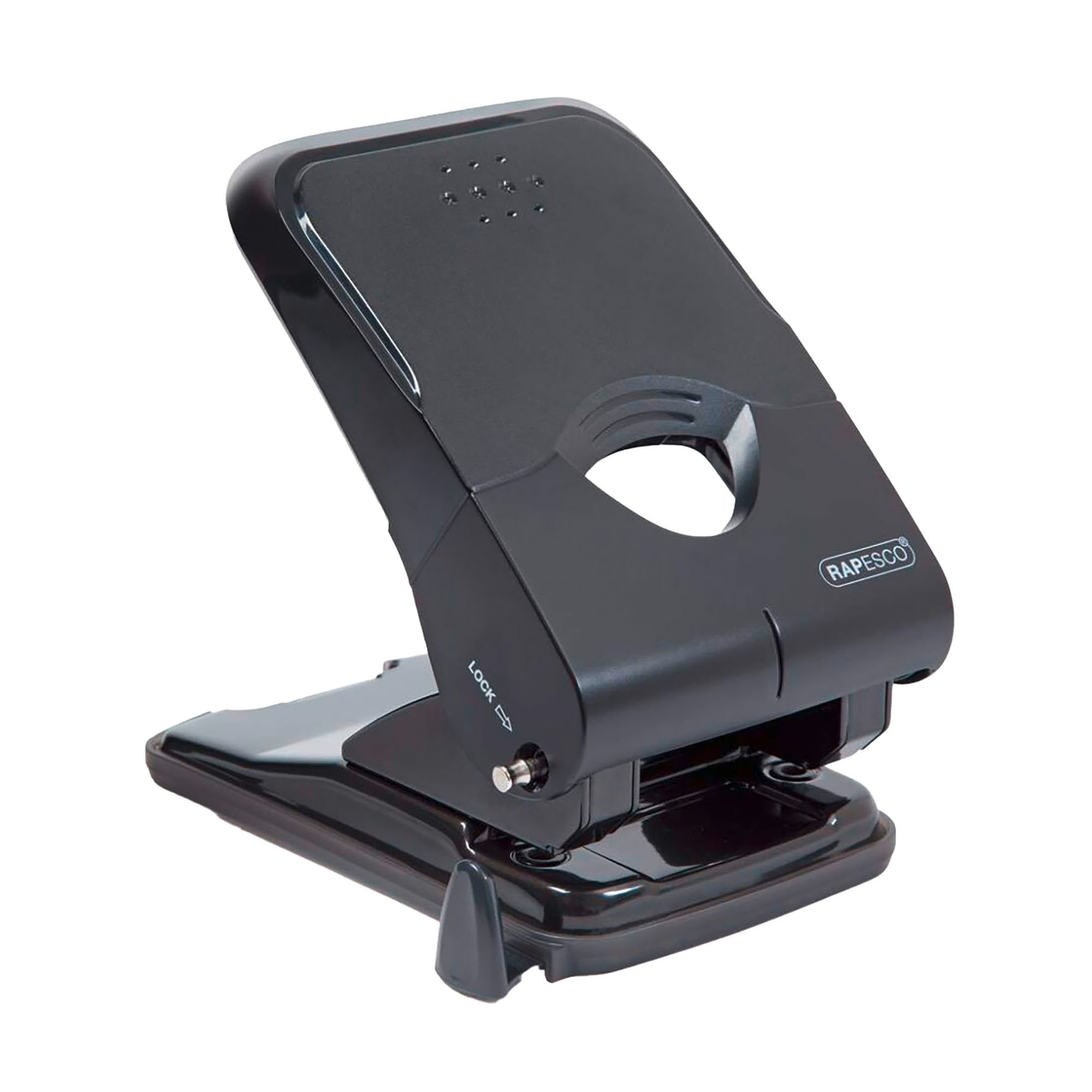 Le perforateur gros travaux Rapesco utilise une ingénierie intelligente pour réduire l'effort. Pour faciliter les travaux de perforation à grande capacité, le perforateur gros travaux Rapesco utilise une ingénierie intelligente pour réduire l'effort jusqu'à 60%. Il est doté d'un verrouillage de la poignée pour un rangement facile, d'un bac à confettis, d'une fenêtre de personnalisation et d'une réglette de guidage réglable. Avec une structure entièrement métallique durable et surmontée d'un couvercle de poignée en ABS renforcé la perforatrice 2 trous Rapesco est très robuste.