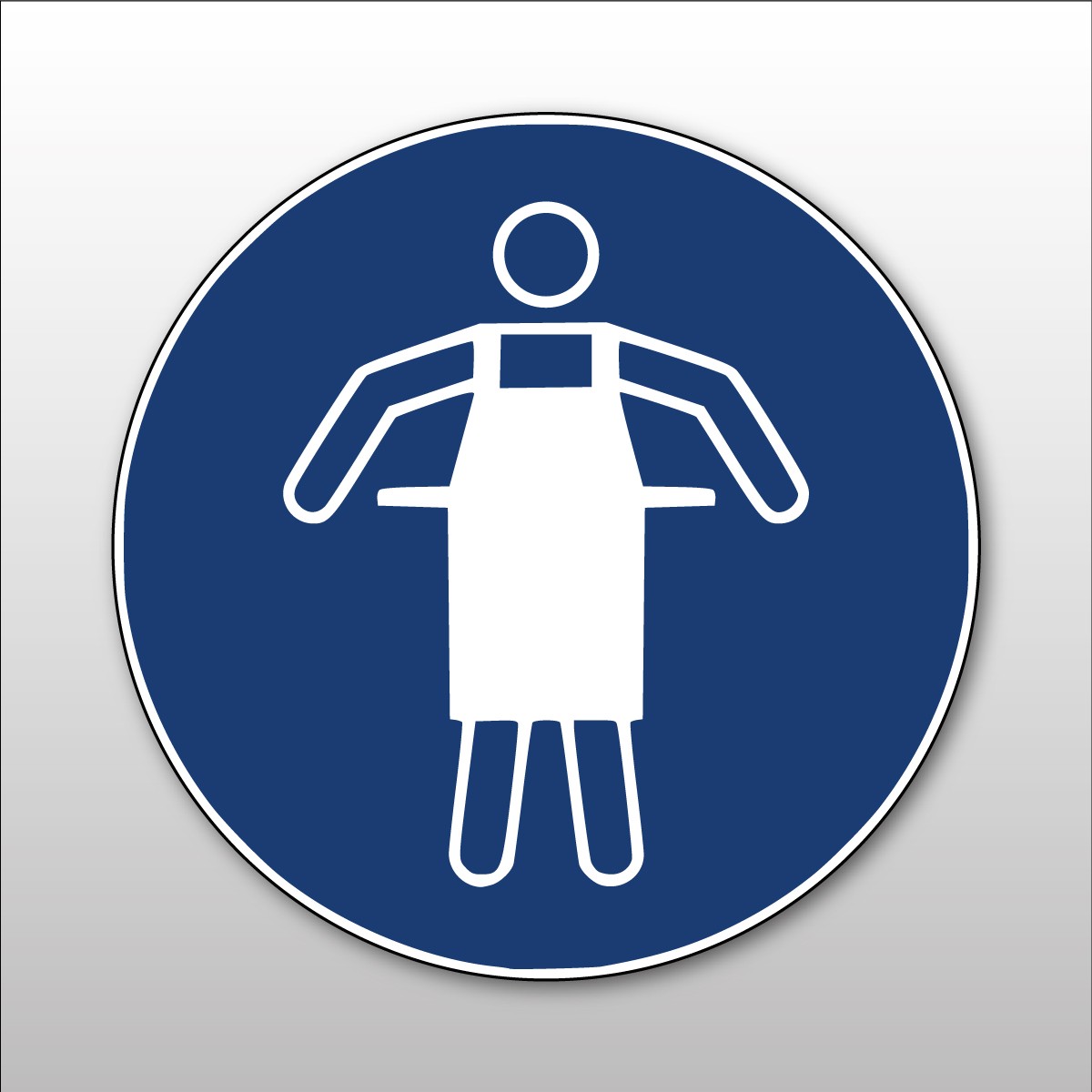 Le modèle en vinyle souple est auto-adhésif, tandis que le modèle en PVC laminé peut être fixé avec du double-face ou par perçage et vissage. Présenté dans un format rond et un coloris bleu, le pictogramme ISO 7010 M026 - Utiliser un tablier de protection - est en blanc pour une meilleure visibilité.