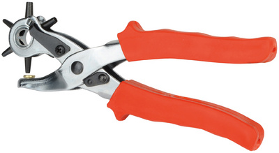 Description détailléePour perforer avec précision, avec 6 poinçons différents, en tôle d'acier, poignée rouge en plastique