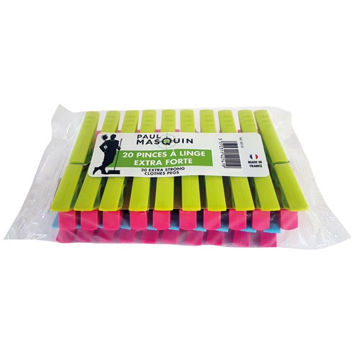 Description détailléePinces à linge extra fortes Paul Masquin.Grandes et solides. Idéales pour l'étendage intérieur comme extérieur.Fabrication française.Sachet de 20 pinces.