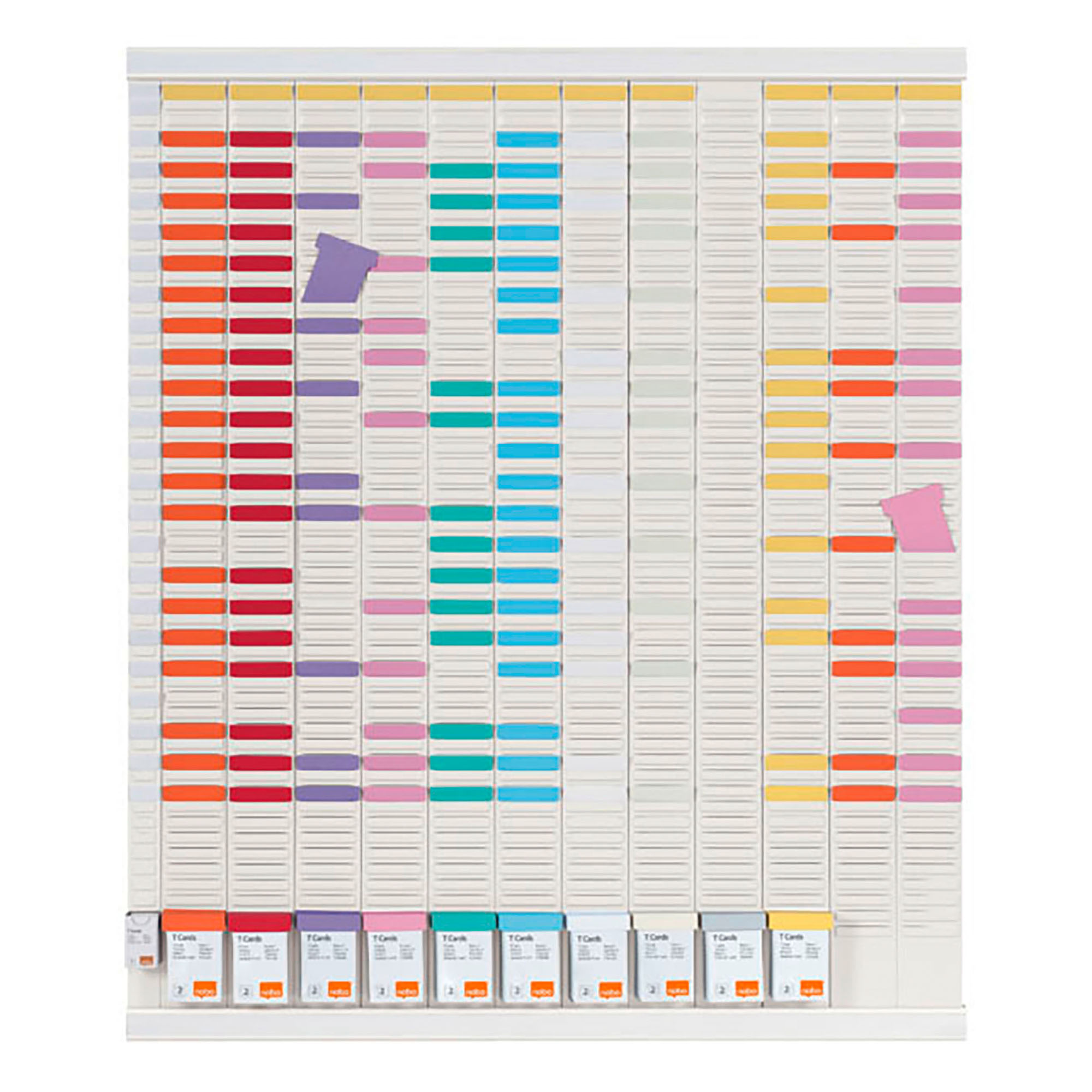 Gardez à vue l'ensemble de vos informations sur l'ensemble de l'année pour vous et votre équipe. Il évite la déperdition de l'information et vous aide à gérer votre organisation ou vos projets annuels. Le planning à fiches T annuel vous donne l'opportunité de visualiser l'ensemble des informations d'un seul coup d'oeil. Facilitez la gestion des réservations, des réunions, des rendez-vous ou encore des suivis de vos commandes à l'aide du kit planning à fiches T.