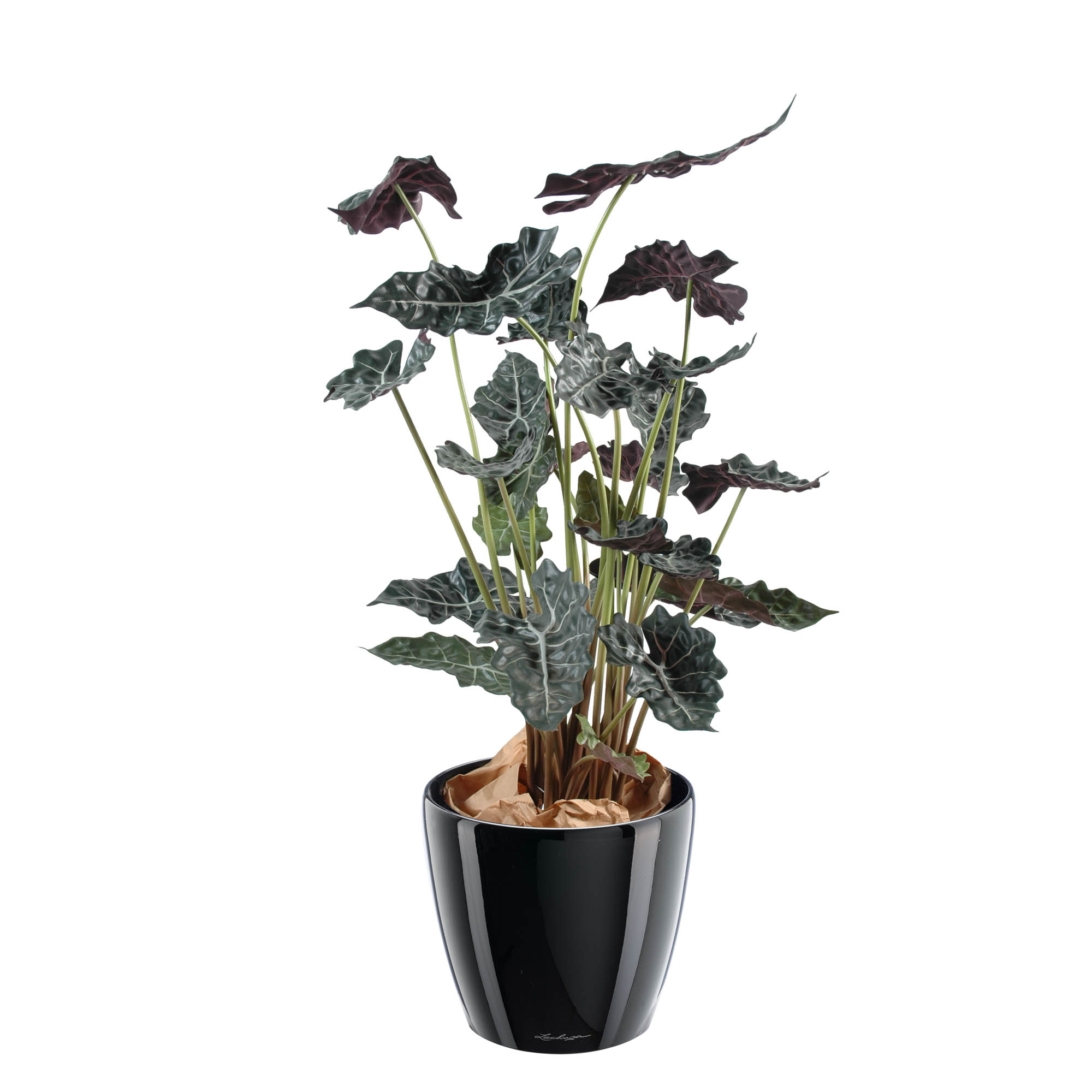 Description détailléeAlocasia artificiel tronc en PVC, grandes feuilles en tergal enduit, vert foncé et rouge portent des nervures vert clair très marquées. Plante fournie dans un pot noir brillant hauteur 26 cm diamètre 28 cm.Livraison en rez-de-chaussée..