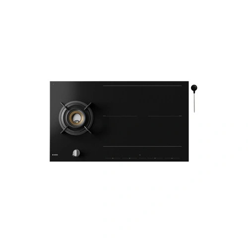 Description détailléeLargeur 90 cm - Revêtement verre en Noir Mat, Brûleur gaz Volcan 3 rampes de flammes - 4 zones induction, Technologie induction Celsius cooking, cuisson au degré près !, Détection automatique des récipients