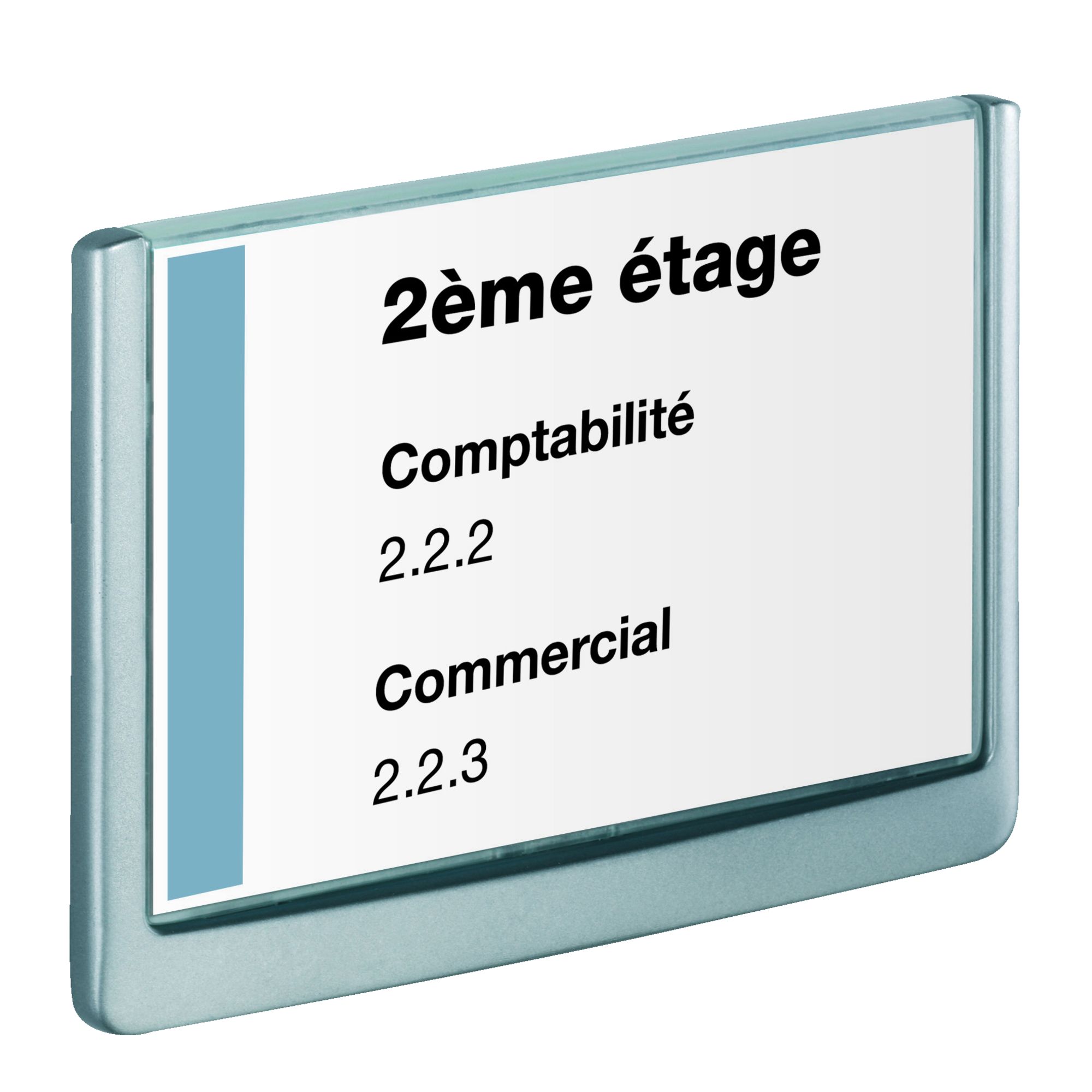 Plaque de signalisation composée d'un cadre graphite en ABS de qualité et d'une plaque amovible en acrylique transparent. Livrée avec adhésif double face, vis et chevilles, gabarit et bristol.