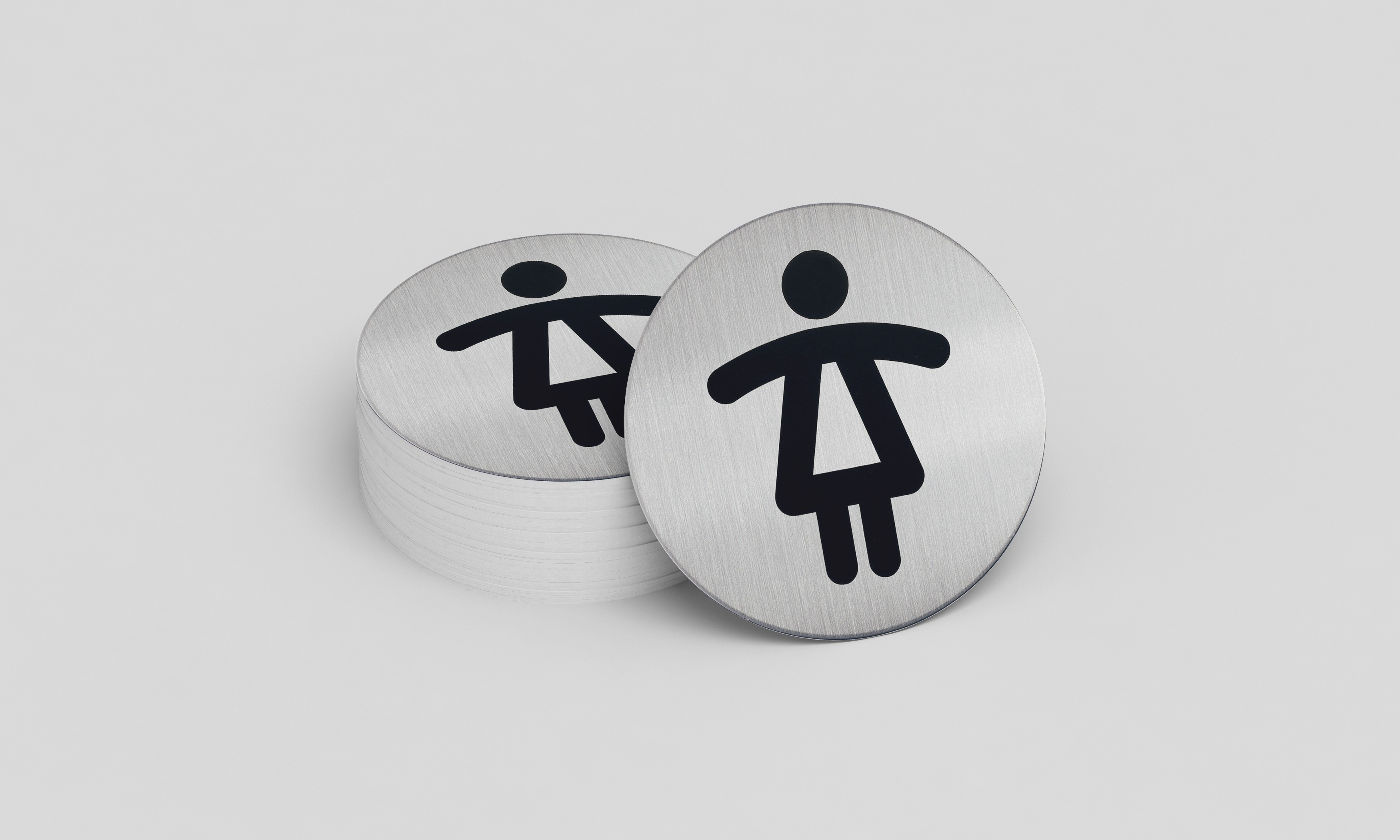 Faites le choix de l'élégance et de la qualité pour votre signalétique intérieure en optant pour la Plaque de Porte - Toilettes Dames - Diam : 83mm - Acier - 1 unité - Intérieur de chez Durable.