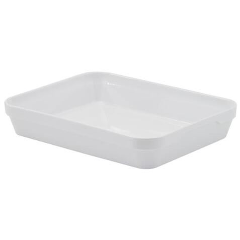 Découvrez le plat rectangulaire profond Londres en porcelaine blanche, alliant design simple et robustesse.