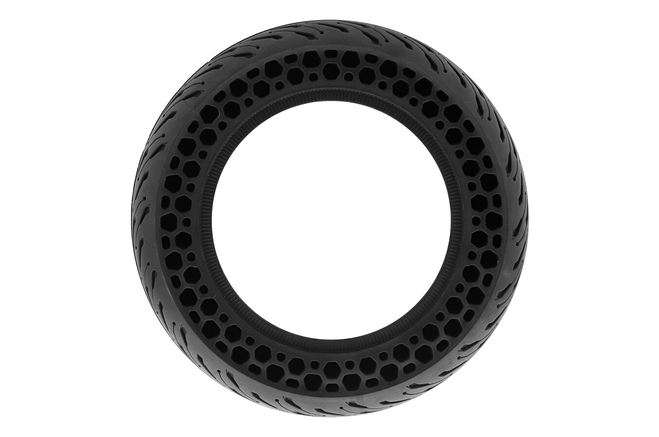 Description détailléePneu plein universel anti-crevaison 10", Alvéoles sur le flanc - Effet d'amortissement supplémentaire, Résistant aux chocs - Ne nécessite ni entretien ni réparation, Compatible avec toutes les trottinettes aux pneus 10"