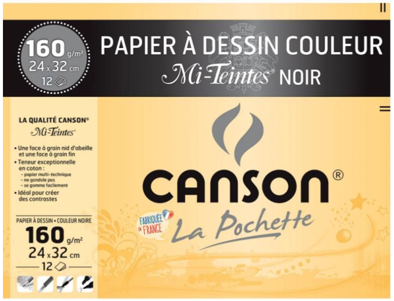 Explorez les possibilités créatives offertes par la Pochette de 12 feuilles papier dessin MI-TEINTES 160g 24x32cm Noir Ref-317104 de la marque Canson. Ce papier d'art de haute qualité est idéal pour les artistes professionnels et amateurs souhaitant travailler sur un support résistant et durable.