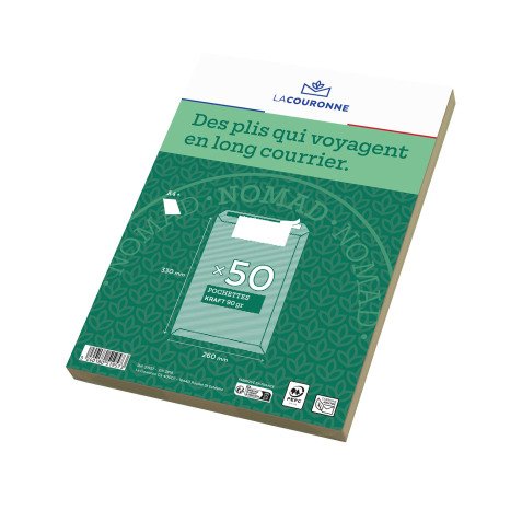 Vous visitez actuellement le page La Couronne - Pochette kraft milleraies brun 260 x 330 mm sans fenêtre - Boîte de 50 du rayon Pochettes standards