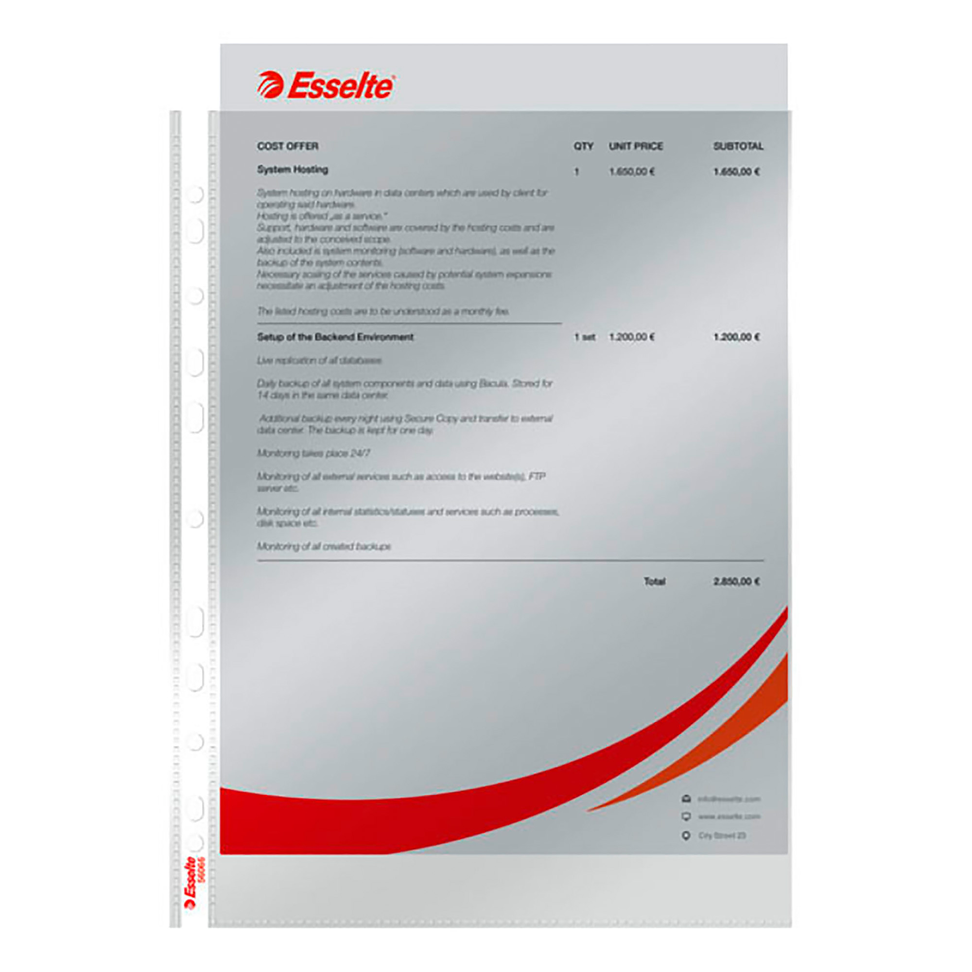 Les pochettes plastiques perforées Esselte A4 protègent vos documents pour une utilisation quotidienne. Classez dans un classeur à levier ou un classeur 4 anneaux vos feuilles de papier grâce à sa bande perforée universelle à 11 trous.