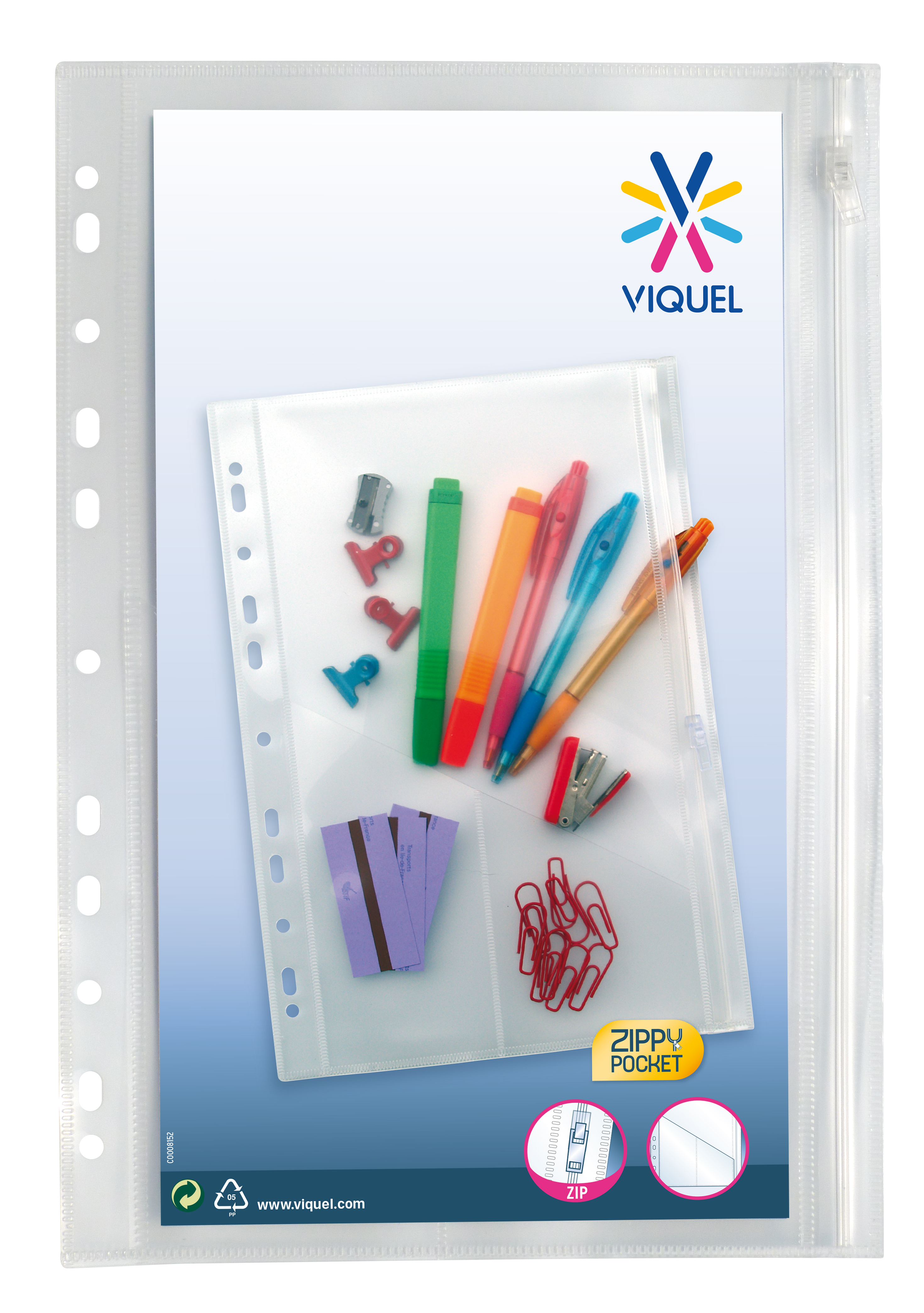 Les pochettes perforées VIQUEL - Zippy Pocket - sont idéales pour le rangement des petits accessoires pour les écoliers tels que ciseaux, trombones, stylos…