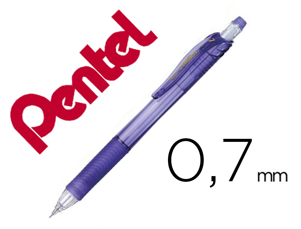 En résumé, le porte-mines Pentel Energize avec canon fixe, mine de 0,7 mm, grip en caoutchouc, gomme avec capuchon et corps violet translucide est un outil d'écriture de haute qualité, conçu pour offrir précision, confort et praticité.