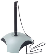 Description détailléeEn polystyrène, chaînette à billes métallique de 680 mm, idéal aussi pour les gauchers, peut être fixé par un film adhésif fourni, mine à encre noire inaltérable, patins en caoutchouc, dimensions: (L)114 x (P)114 x (H)155 mm