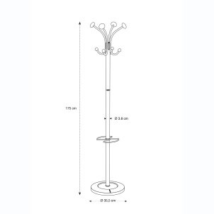Le portemanteau Vienna d’une hauteur de 179 cm est également robuste et design grâce à sa conception. Son fût et ses tiges sont réalisés en métal chromé, et ses patères sont conçues en ABS noir. Pour une stabilité optimale, le socle lesté Ø 38 cm.