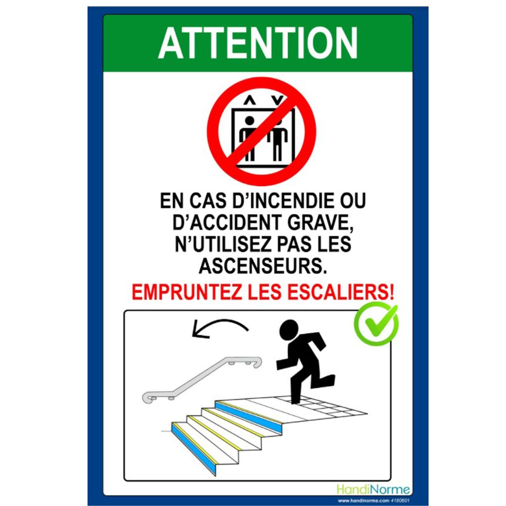 Idéal pour toutes sortes d'établissements. Ce poster de consignes d'évacuation en matière plastifiée peut être collé à l'intérieur et à l'extérieur. Il existe en modèle escaliers vers la droite et en modèle escaliers vers la gauche. Poster de consignes évacuation escaliers deux modèles Caractéristiques du produit : Format A3 (297 x 420 mm)Matière: plastificationFixation: A fixer à l'aide d'adhésif double faceModèle évacuation escaliers vers la droite Modèle évacuation escaliers vers la gauche