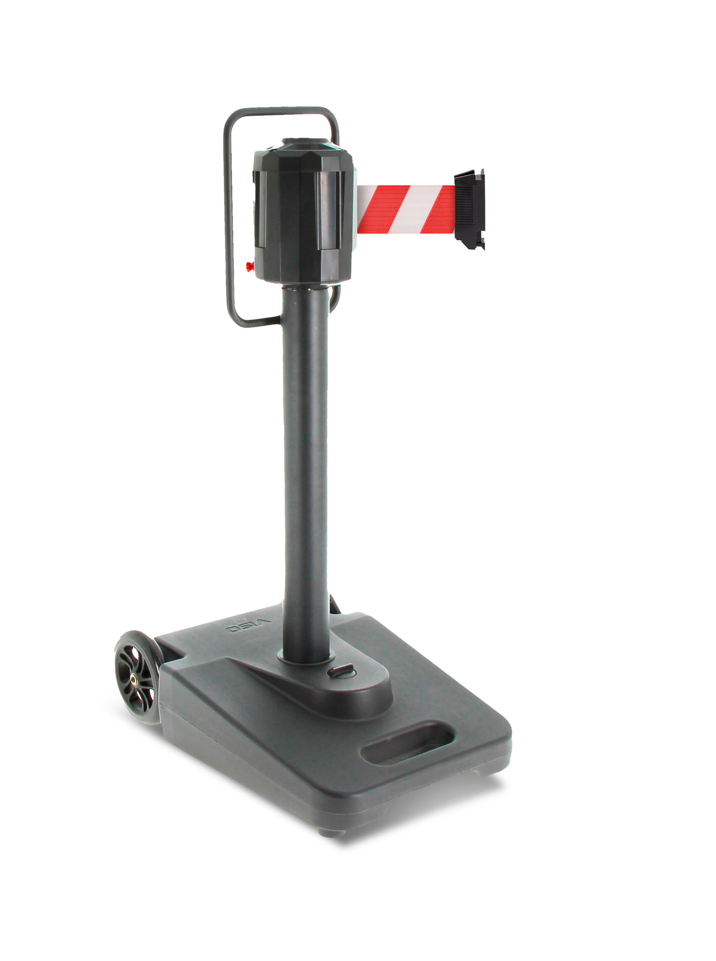 Poteau à sangle en acier et PP noir avec sangle 15 ml rouge/blanche