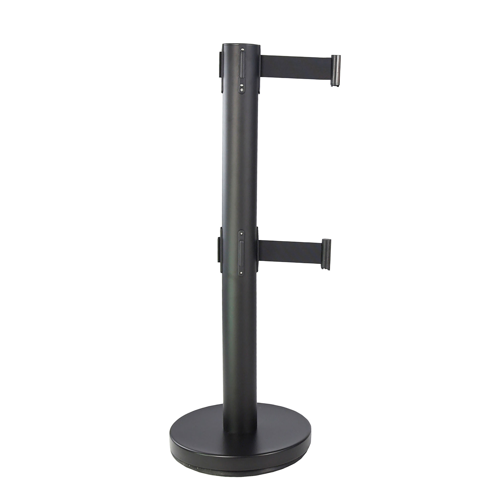 Description détailléePoteau à sangle permettant de guider le public et de réguler le trafic. Système de freinage et anti panique qui permet de décrocher automatiquement la sangle en cas d'urgence. Poteau à sangle étirable avec 3 points d'accrochage.Trou fileté afin de pouvoir y ajouter un panneau d'affichage.Fabriqué en acier et polypropylène (sangle)Base lestéeTube Ø : 7,5 cm.Base : Ø 32 cm.Sangles : largeur 50 mm. Coloris noirRécepteur mural en option : nous consulter.
