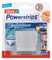 Intégrez à votre espace de travail ou à votre salle de bain le Powerstrips CROCHET DOUBLE 'WAVE' WATERPROOF de la marque Tesa, un accessoire pratique et élégant en inox. Ce crochet double, spécialement conçu pour accrocher serviettes, éponges et autres accessoires, apporte une solution de rangement efficace et esthétique dans un environnement humide.