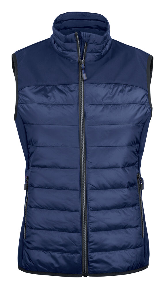 Softshell bodywarmer ultra-légère Epaules et parties latérales en softshell (tissu 1). Dos et face avant en doudoune légère (tissu 2). Fermeture de couleur contrastée devant et aux poches. Tire-zips bicolores. Bords élastiqués aux manches et au bas de la veste. Protège-menton