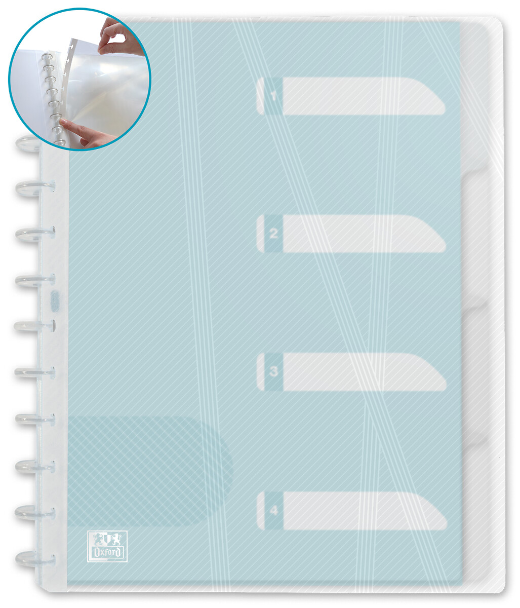 Ce protège-documents se distingue par sa praticité. Ses pochettes amovibles permettent non seulement de mettre à jour sans effort votre contenu, mais aussi de mieux structurer votre classement. De plus, les quatre intercalaires amovibles offrent une excellente opportunité pour segmenter le contenu et optimiser l'organisation de vos documents.