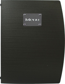 Description détailléeProtège en plastique, face avant avec inscription MENU en relief sur plaque en acier inoxydable, protège souple, incl. 1 double insert transparent pour 4 feuilles, dimensions: (L)180 x (H)235 mm
