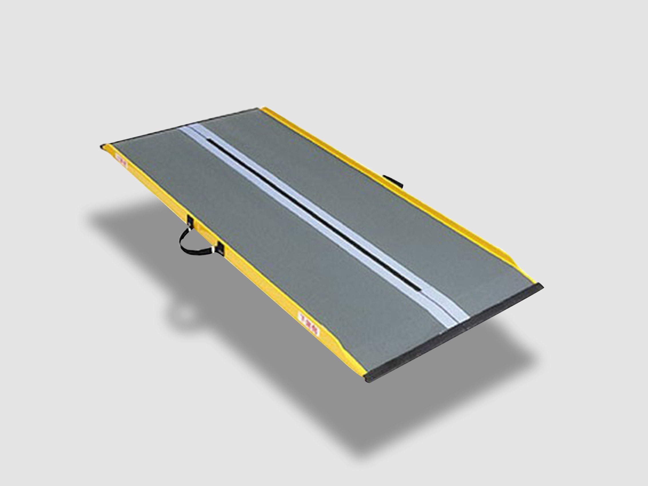 Rampe d'Accès Pliable LITELa Rampe LITE est une rampe pliable en fibre de verre et de carbone. Sa surface grise, recouverte de peinture au caoutchouc, est antidérapante afin d'assurer la sécurité des utilisateurs. Les modèles les plus longs accueillent des chasse-roues de 25 mm de hauteur pour éviter les sorties de rampes intempestives. De part sa composition, la Rampe LITE se veut ultra-légère, et c'est bien là son principal avantage. De plus, ses poignées ergonomiques et ses bandes velcro permettent un stockage, une manipulation et une installation aisés, respectant les directives en matière de santé et de sécurité.Pour la stocker, il suffit de la replier en deux et de la laisser à proximité de son lieu d'utilisation. Elle doit toujours être accessible afin de pouvoir aider les personnes à mobilité réduite à rentrer dans votre établissement et franchir l'obstacle situé à l'entrée.D'une largeur interne de 760 mm, elle permet le passage des fauteuils roulants manuels, électriques et permet aussi le passage des scooters de mobilité. Plusieurs longueurs sont disponibles afin de pouvoir rendre l'accueil de votre ERP le plus confortable et facile possible tout en respectant les normes d'accessibilité en vigueur.Pensez à installer un Carillon d'Appel à l'entrée de votre ERP pour que les personnes à mobilité réduite puissent vous informer de leur présence. La sonnette du carillon, tout comme les autres dispositifs, doivent être placés entre 0,90 et 1,30 m de hauteur, tout en étant à plus de 40 cm d'un angle rentrant ou de tout obstacle.CaractéristiquesMatière : Panneau : Fibre de carbone / Fibre de verre Charnière : NylonPoignée : NylonProtecteur d'angles : CaoutchoucSurface Antidérapante : Peinture uréthane au caoutchoucColoris : Surface de passagebLigne centrale : BleuPartie latérale : JauneArrière : GrisBande velcro : JauneHauteur des rebords : 25 mm, pour les modèles les plus grandsMarquage : Respect de la directive 93/42/CEERéférence3180224318022531802263180227Hauteur à franchir85 mm125 mm165 mm205 mmLongueur850 mm1250 mm1650 mm205 mmCharge Max.300 kg300 kg300 kg300 kgPoids4,0 kg6,0 kg7,5 kg9,5 kgLargeur intérieure780 mm760 mm760 mm760 mmLargeur hors-tout780 mm780 mm780 mm780 mmHauteur des borduresSANS bordure25 mm25 mm25 mmDimensions pliéeL.850 x l.390 x h.38 mmL.1250 x l.390 x h.106 mmL.1650 x l.390 x h.106 mmL.2050 x l.390 x h.106 mmComment choisir la longueur de sa rampe ?Pour une Rampe Amovible, la pente maximal à respecter est de 10%.HauteurPente 6 %Pente 8 %Pente 10 %Pente 20 %10 cm1,67 m1,25 m1,00 m50 cm15 cm2,50 m1,88 m1,50 m75 cm17,5 cm (1 Marche)2,92 m2,19 m1,75 m88 cm20 cm3,33 m2,50 m2,00 m1,00 m25 cm4,17 m3,13 m2,50 m1,25 m30 cm5,00 m3,75 m3,00 m1,50 m35 cm (2 Marches)5,53 m4,38 m3,50 m1,75 m40 cm6,67 m5,00 m4,00 m2,00 m45 cm7,50 m5,63 m4,50 m2,25 m50 cm8,33 m6,25 m5,00 m2,50 m52,5 cm (3 Marches)8,75 m6,56 m5,25 m2,63 m55 cm9,17 m6,88 m5,50 m2,75 m60 cm10,00 m7,50 m6,00 m3,00 m65 cm10,83 m8,13 m6,50 m3,25 m70 cm (4 Marches)11,67 m8,75 m7,00 m3,50 m75 cm12,50 m9,38 m7,50 m3,75 m80 cm13,33 m10,00 m8,00 m4,00 m85 cm14,17 m10,63 m8,50 m4,25 m90 cm15,00 m11,25 m9,00 m4,50 m95 cm15,83 m11,88 m9,50 m4,75 m100 cm16,67 m12,50 m10,00 m5,00 m Ce que dit la loi Article 2 - II.2°.a) de l'Arrêté du 8 Décembre 2014"Lorsqu'une dénivellation ne peut être évitée, un plan incliné de pente inférieure ou égale à 6 % est aménagé afin de la franchir. Les valeurs de pentes suivantes sont tolérées exceptionnellement :Jusqu'à 10 % sur une longueur inférieure ou égale à 2 m.Jusqu'à 12 % sur une longueur inférieure ou égale à 0,50 m.Un palier de repos est nécessaire en haut et en bas de chaque plan incliné, quelle qu'en soit la longueur. En cas de plan incliné de pente supérieure ou égale à 5 %, un palier de repos est nécessaire tous les 10 m."De plus, dans le cadre de la Réglementation Accessibilité des ERP, un Carillon d'Appel est obligatoire. Celui-ci doit être positionné entre 0,90 et 1,30 m de hauteur et à plus de 40 cm d'un angle rentrant ou d'un obstacle.Pour obtenir plus d'informations sur les rampes amovibles sans dérogation, rendez-vous sur notre page dédiée.