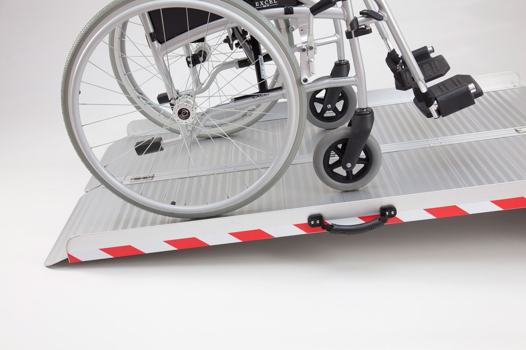 Sa légèreté permet une manipulation rapide et simple, respectant les directives en matière de santé et de sécurité. Elle dispose d'une poignée pour faciliter son transport et son installation. Une bande rouge et blanche est aussi placée de chaque côté de la rampe afin d'améliorer sa visibilité.